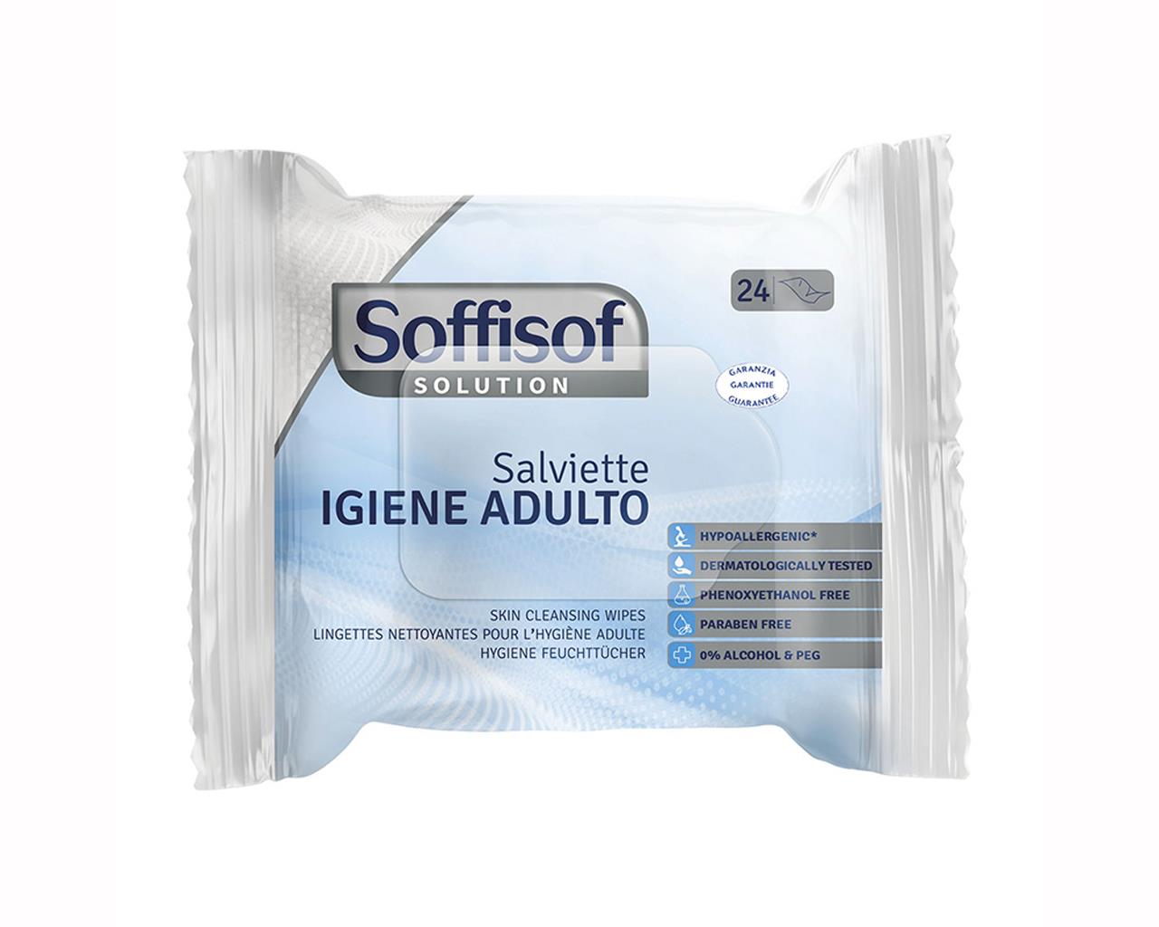 SoffiSof Salviettine umidificate sono pensate per l’igiene quotidiana del corpo e svolgono un’efficace azione detergente lasciando la pelle morbida.