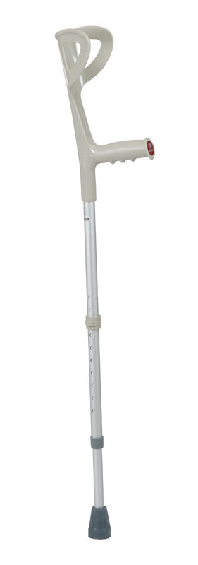 Stampella avambraccio leggera tipo canadese, costruita in tubo di alluminio anodizzato. Impugnatura anatomica antiscivolo stampata ad iniezione e composta da un’unica parte per offrire comfort e sicurezza.