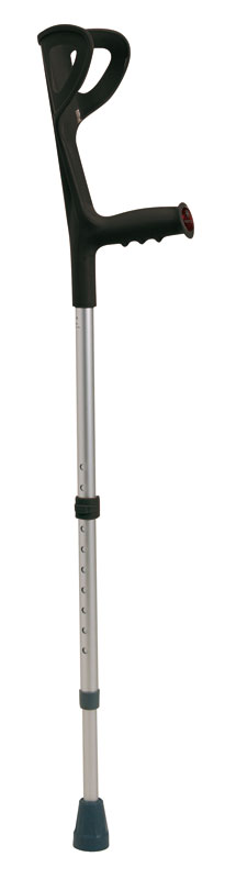 Stampella avambraccio leggera tipo canadese, costruita in tubo di alluminio anodizzato. Impugnatura anatomica antiscivolo stampata ad iniezione e composta da un’unica parte per offrire comfort e sicurezza.