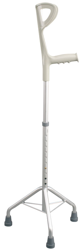 Tripode base larga con appoggio brachiale, impugnatura anatomica. Interamente realizzato in alluminio anodizzato. puntali antiscivolo in gomma morbida per una maggior sicurezza.