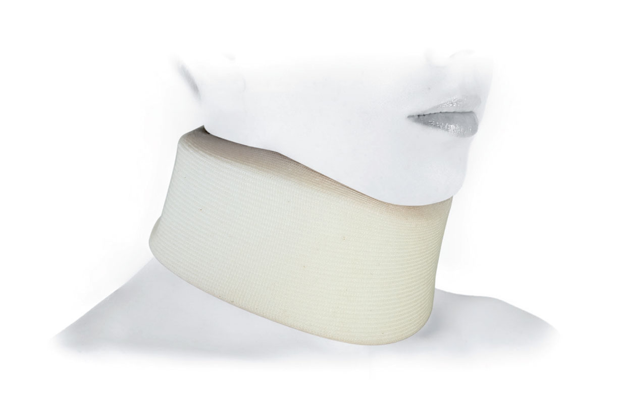 Collare cervicale morbido. Tipo universale ANATOMICO in polyammide, rivestito in maglia di cotone anallergica. Chiusura a velcro regolabile di 11cm.